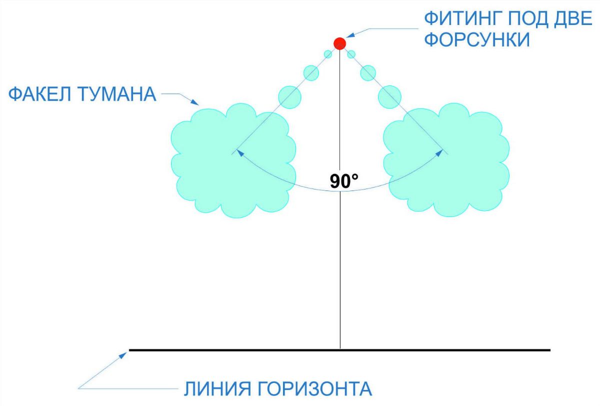 Это распыление воды через специальные форсунки, диаметр пропускного отверстия которых настолько мал, что в совокупности с высоким давлением насоса позволяет расщеплять воду на мелкие частицы, размер которых может достигать от 5 до 10 микрон. Таким образом, образуемый водяной туман охлаждения разлетается под воздействием естественных потоков воздуха и решает сразу несколько задач: